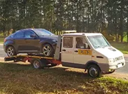 ДТП. Бывает, что перед доставкой машину нужно сперва вытащить на дорогу - этим также занимаются сотрудники службы эвакуации в Минске, используя имеющиеся у них оборудование и навыки.